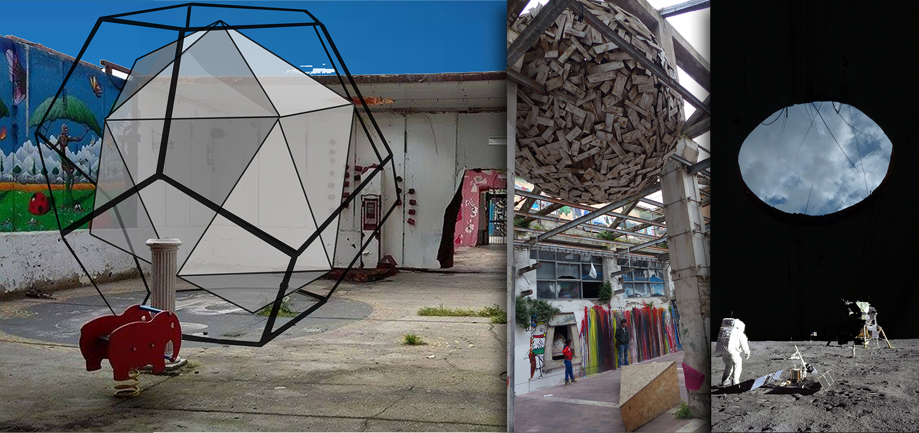 Il progetto "MaAmAMi" - Journey to the moon - rappresenta un viaggio di partenza o arrivo nel mondo alieno del Maam, una realtà inaspettata in cui la precarietà degli spazi fa da cornice a un tesoro nascosto fatto d'arte e storie umane. Una struttura realizzata con materiali di riciclo in una dimensione di precarietà contestuale sostiene un involucro, al cui interno ospita un nucleo, una stanza segreta che custodisce un altro mondo abbandonato e ormai confinato: la natura. Come nel Maam un gioco di inaspettate e sconosciute realtà si manifesta improvvisamente in dinamiche di contrasto: l'abbandono e il recupero, il cielo e la terra, l'uomo e la natura, l' arte e il degrado. Una partenza per chi vorrebbe lasciare questo strano mondo e un arrivo per chi ha deciso di accettarlo ... e amarlo.