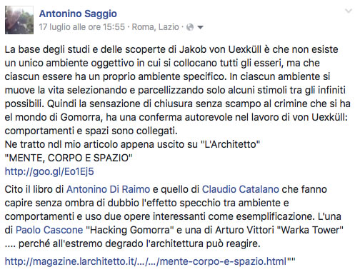 However, also the man when is put in a different conditions "sees" and experience space in completely different way. Lately I have spoken with the Italian astronaut, the colonel Roberto Vittori. Vittori describes space in the conditions of microgravity as completely different from the space we are accustomed to. A space in which one floats is a radically different one: it is a space full of possibility and of gorges and above all it is a space to be used physically and therefore cognitively differently.