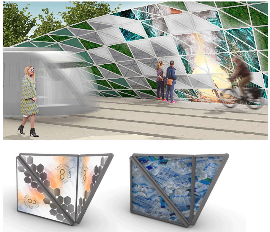 Infatti bisogna capire che il materiale usato è l' EFTE! libro con esempii di Filippo Giovannetti Antonino Bontempo, Media Superfici.. tesi di dottorato Parte a, parte B Si tratta di un materiale plastico usato in opere imporatnti a cominciare dallo stadio Mercedes Monaco di Herzog e de Meuron che ha non solo capacità tecniche notevoli ma anche potenzialità appunto di diventare "schermo in architettura". Infatti se è accoppiato a sistemi "a led" (inseriti all'interno del cuscino della Efte e in cui ogni punto luminoso può variare e appunto diventare immaginee schermo) si è ormai ottenuto da tempo uno schermo che diventa edificio... studiare e approfondire questo punto anche tecnologicamente...