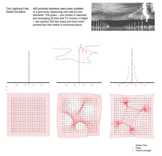 Il lavoro di Tschumi a sua volta dve molto all'approccio Notazionale... Una tecnica che asrae un livello un layer dalla realtà per creare un sistema di relazioni - un campo - astratto. ipico ed esemplare a questo proposito è il lavoro di Walter de Maria Lighting filed (molto in rete)
