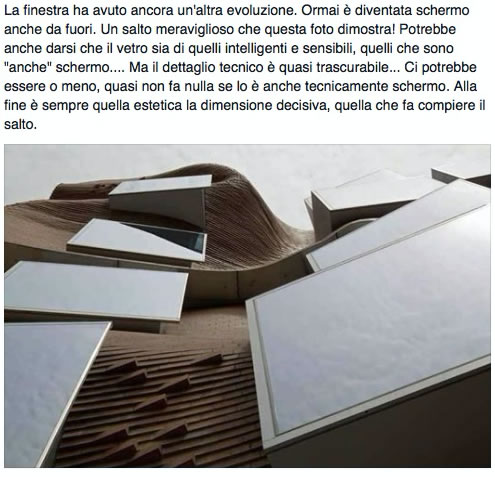Vi è un rapporto forte e diretto tra l'immagine dello schermo e sullo schermo cui noi siamo avvolti nel mondo contemporaneo grazie all'elettronica e alcuni sviluppi "superficiali" della architettura di questi anni. Naturalmente sviluppi superficiali vuole dire almeno tre o quattro cose diverse.