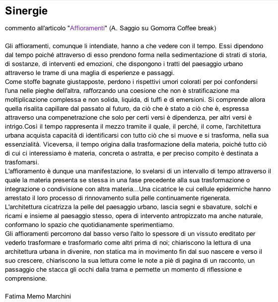 Fatima marchini 2011 spiega che gli affioramenti hanno a che vedere con il tempo