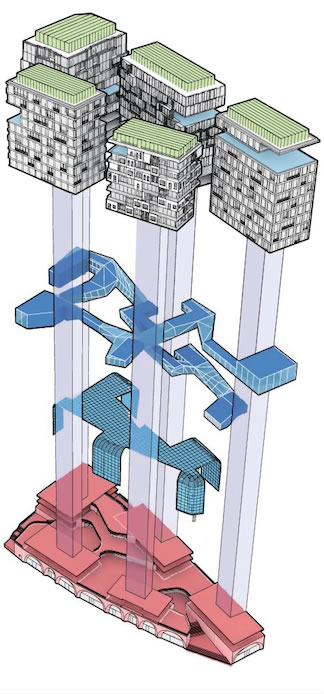 Il progetto di Un Studio che abbiamo già incontrato è un imporante esempio di "conquista del centro". La aprticolarità di questo appraccio più contemporaneo consiste nell'intessere "un diagramma" variabile (in questo coao il continuo intreccio tra i quattro spazi principali) e non una geometria fissa