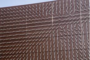 Progettata dal designer statunitense Charles Sowera, l’installazione è attualmente stata integrata sul lato esterno del Randall Museum di San Francisco e costituisce un esperimento cinetico a metà strada tra arte e scienza. Non solo l’impianto unisce un elemento di design originale, ma riesce a rendere visibile qualcosa che di solito non è visibile ad occhio nudo: l’interazione tra aria ed edificio. Anche in questo campo, quindi, l’evoluzione dei materiali non è stata indifferente; si sono introdotti sempre più materiali provenienti dal campo nautico o aerospaziale (vedi kevlar o carbonio), ma oggi, seppur estremamente prestanti, anche questi materiali risultano obsoleti rispetto per esempio a l’Aerographite.