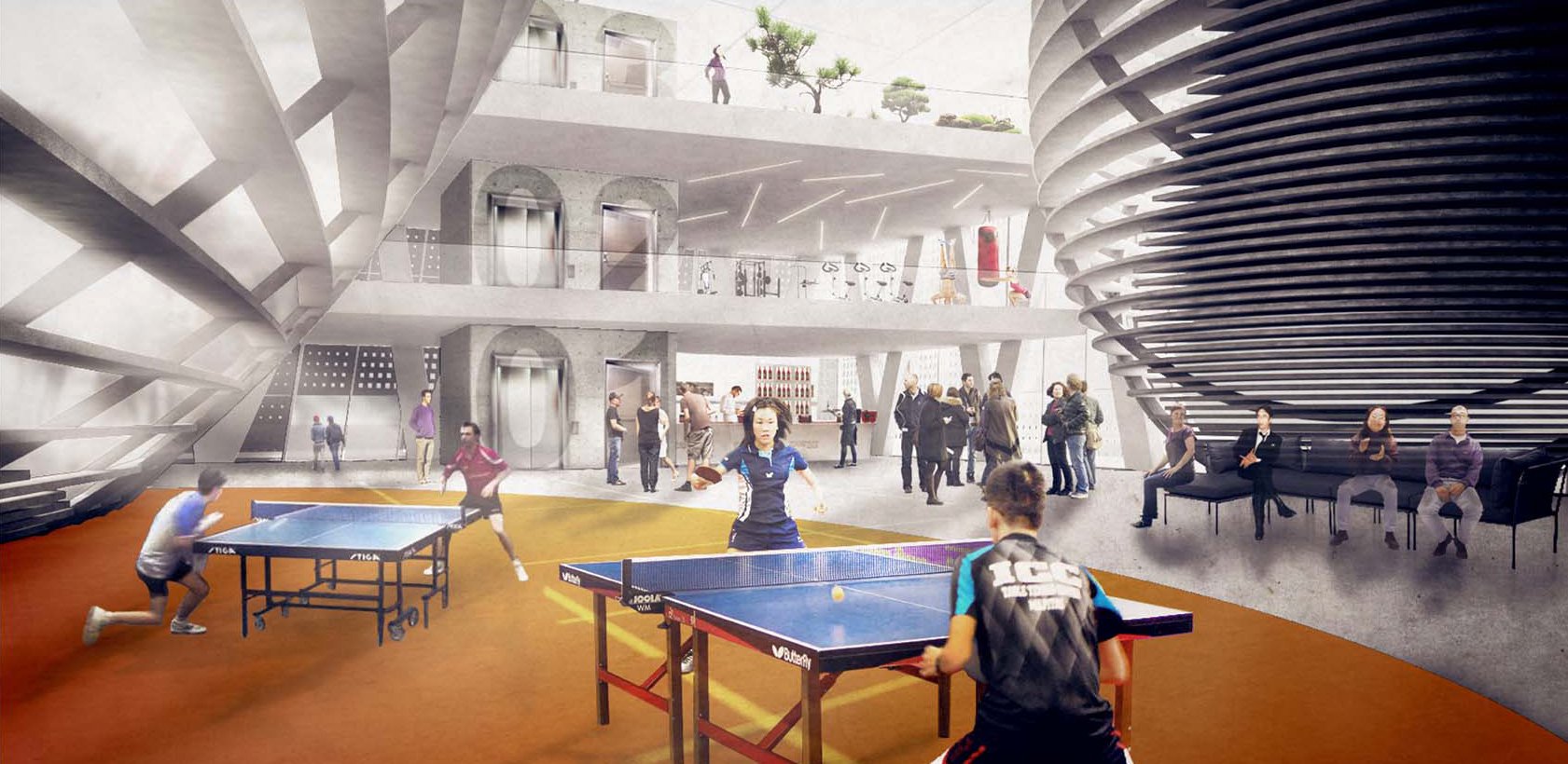 Il progetto TTC propone di creare un centro unico in Italia per la disciplina olimpica del tennis da tavolo, e organizza tutte le sue diversificate funzioni produttive, commerciali, residenziali e culturali in rapporto a questo sport. Il piano sotterraneo ospita gli spazi richiesti per le competizioni nei rigidi standard imposti dalla federazione, al piano di entrata un foyer per gli allenamenti e ai piani superiori una serie di altri ambiti commerciali e di ristorazione.