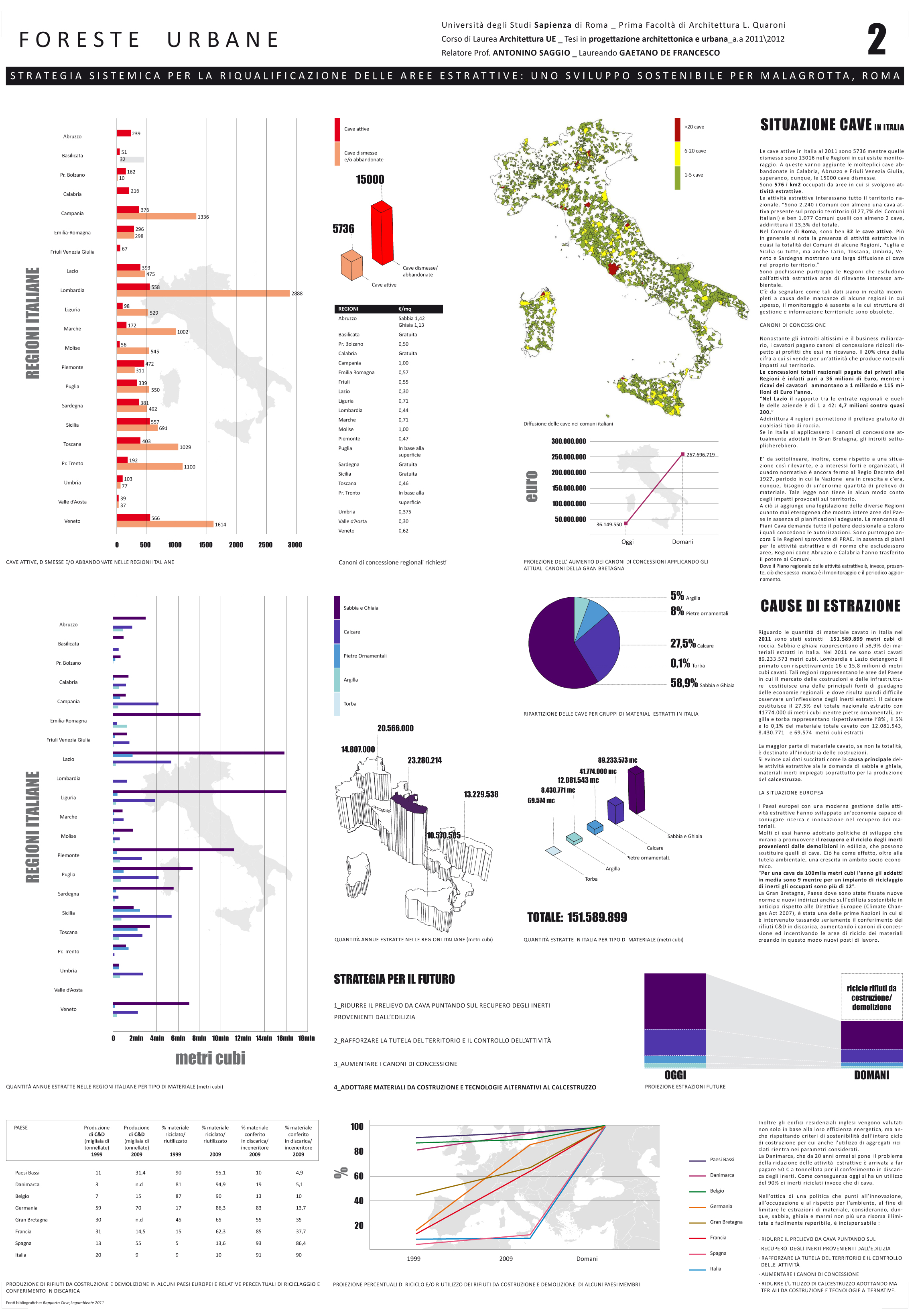 Decidendo di rispondere alla mia sfida di docente, e a quella della città di Roma, e di affrontare quindi la ricerca sulla “crisi” Malagrotta, l’oggi architetto Gaetano De Francesco cominciò ad indagare la funzione prevalente dell’area, appunta quella estrattiva. Scoprì appunto che si trattava di una immensa serie di cave: cave per 6000 ettari e alle porte di Roma!. Notando l’enorme dimensione ci si pose una domanda apparentemente ingenua, ma che al lettore stesso verrà voglia di porsi: “Ma tutte queste migliaia di ettari … per estrarre pietre? E che costruiamo ancora con le pietre da taglio? Con i tufi, i travertini, i marmi?.” La risposta viene dai numeri che troverete nel libro: le cave non servono che in piccola parte alle pietre da taglio, servono invece ed in grandissima parte per estrarre inerti: piccoli sassi o ghiaia o sabbie da impastare con il cemento per formare il calcestruzzo!