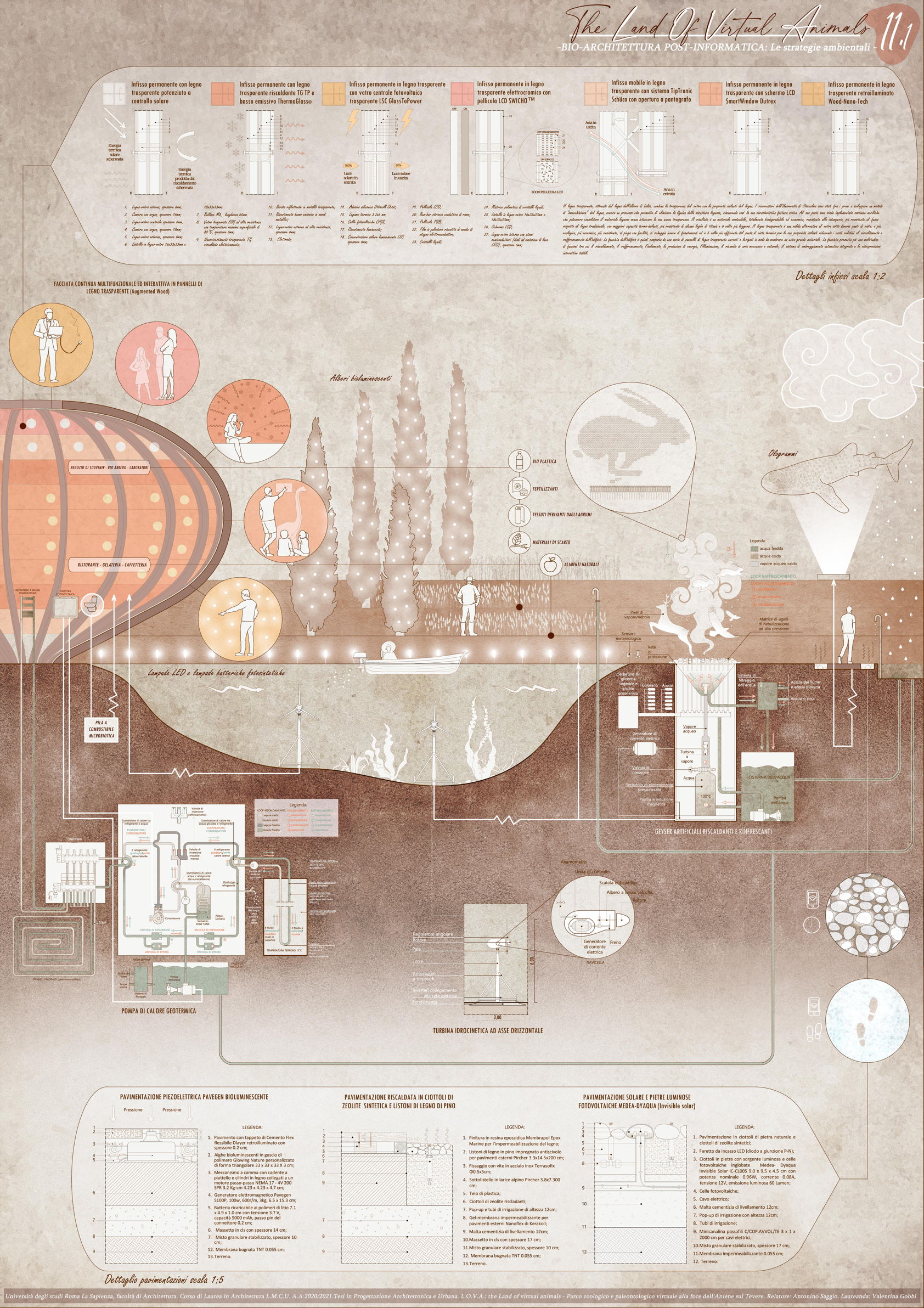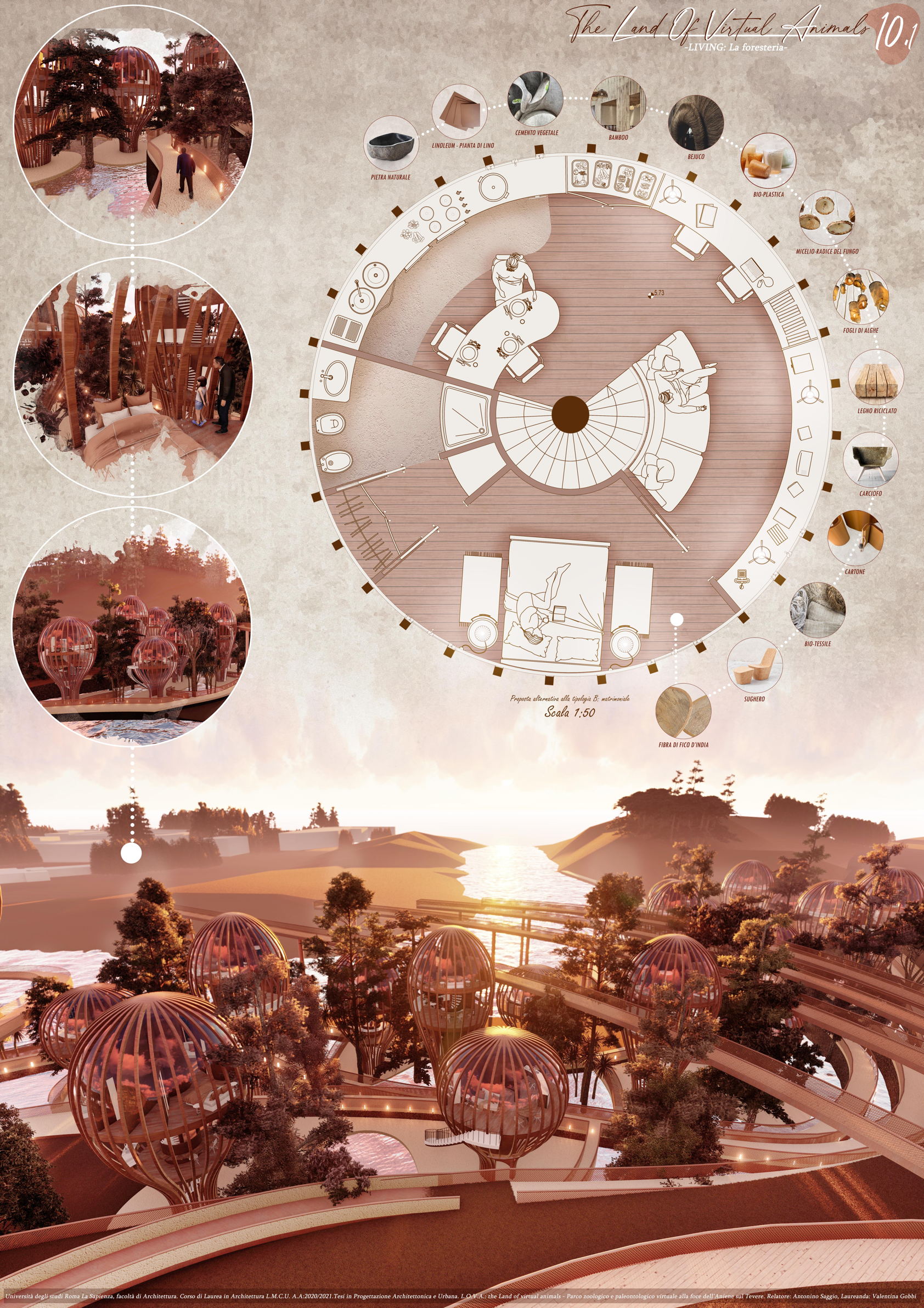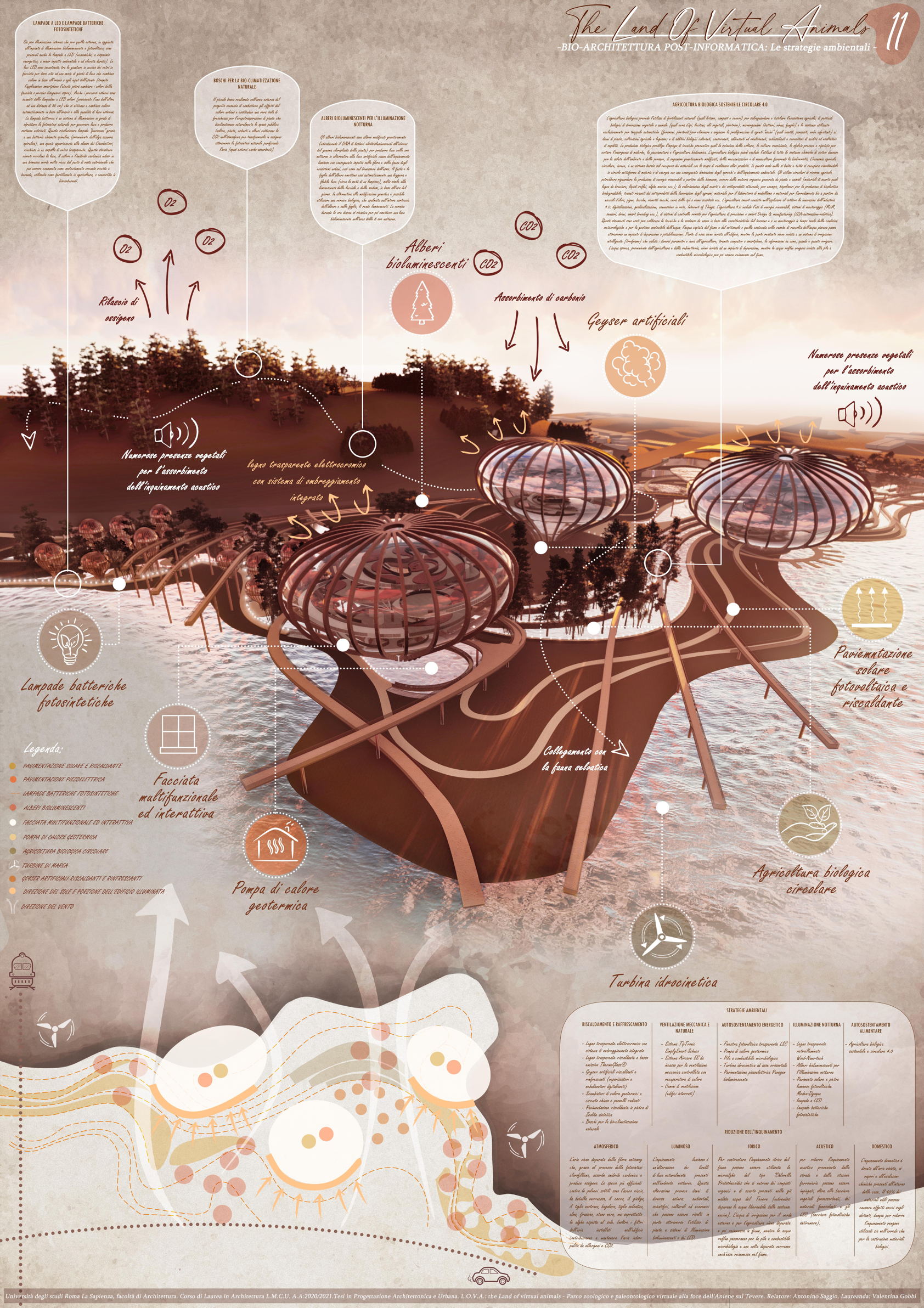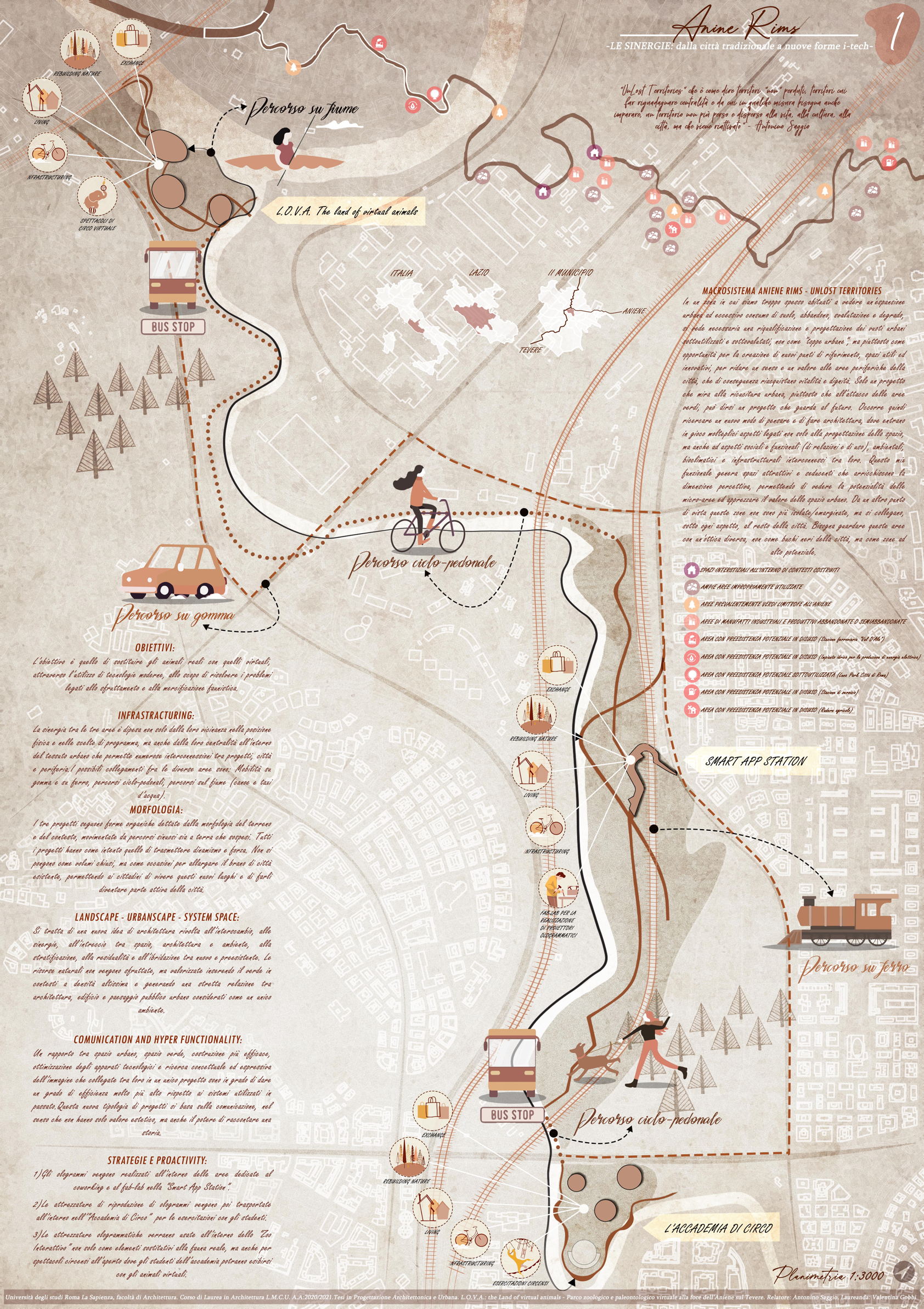Il progetto è situato alla foce dell’Aniene sul Tevere ed ha come duplice scopo la riqualificazione architettonica ed urbana del primo tratto del fiume Aniene attraverso la realizzazione di un’infrastruttura slow ecosostenibile lungo la quale si collocano una serie di micro-installazioni. Ogni micro-installazione ospiterà diversi giochi ed attività alle quali l’utente potrà accedere con pagamenti in eco-monete ottenute attraverso baratto con attività sociali proattive e produttive. Gli ecoin vengono poi utilizzati come seconda modalità di accesso allo zoo ologrammatico e come ricompensa del superamento di alcune missioni da affrontare per potere accedere ai singoli edifici nell’area di progettazione.