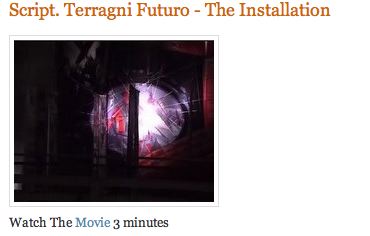L'installazione alla Leopolda di Firenze in parte ripropone e in parte reinventa le spazialità e i contenuti della Mostra "Terragni Futuro" proposta per la Casa dell'Architettura di Roma. Sul ballatoio del primo piano dell'affascinante ex Stazione ferroviaria fiorentina è appesa una grande mappa che riassume il progetto generale di allestimento, le localizzazioni e gli indirizzi web di ciascuna delle 25 installazioni. Lo spazio espositivo è caratterizzato da questo pannello di tre metridi altezza per quattro di lunghezza e da un secondo ambito dove, su velari visibili dall'intera stazione, è proiettato un film con il lavori degli studenti e una breve introduzione a Terragni. Il percorso espositivo è cararatterizzato da bande di disegni appesi a fili da bucatoe da alcuni plastici critici. Il pubblico si sposta traqueste bande , analizza le diverse proposte e, immergendosi nello spazio, diventa attore della scena.