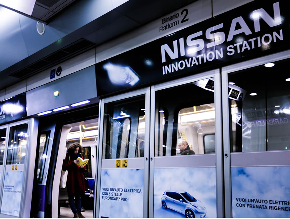 La casa automobilistica Nissan gestirà per tre anni la comunicazione della stazione raccontando il proprio modo di innovare ai 65mila passeggeri che la frequentano ogni giorno. La stazione, come si legge dal sito Nissan, è stata completamente attrezzata per raccontare la storia e il futuro di Nissan, innanzitutto con un muro led da 70 metri quadri che trasmetterà una programmazione variegata ed eventi in streaming, ma anche attraverso uno schermo touch, che dà modo di ottenere informazioni sui prodotti della casa e di mettersi in contatto con i concessionari prenotando test drive attraverso Qr code. Il ledwall, posizionato sulla parete e ben visibile ai viaggiatori, ha le dimensioni di m. 10,2 di larghezza e m. 6 di altezza ed è composto da ben 170 pannelli.