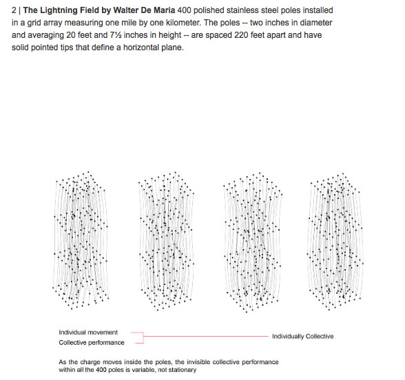 Il lavoro di Tschumi a sua volta dve molto all'approccio Notazionale... Una tecnica che asrae un livello un layer dalla realtà per creare un sistema di relazioni - un campo - astratto. ipico ed esemplare a questo proposito è il lavoro di Walter de Maria Lighting filed (molto in rete)