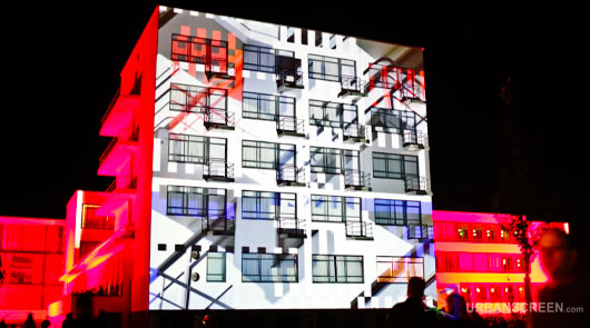 le invio un link interessantissimo, (proiezioni in scala urbana "URBANSCREEN.com" già visto) ma qui: http://www.urbanscreen.com/usc/323, c'è una proiezione sul blocco residenze del BAUHAUS (raster, pixel, vettori, animazione, interattività, ecc.), una mixitè delle vostre lezioni.