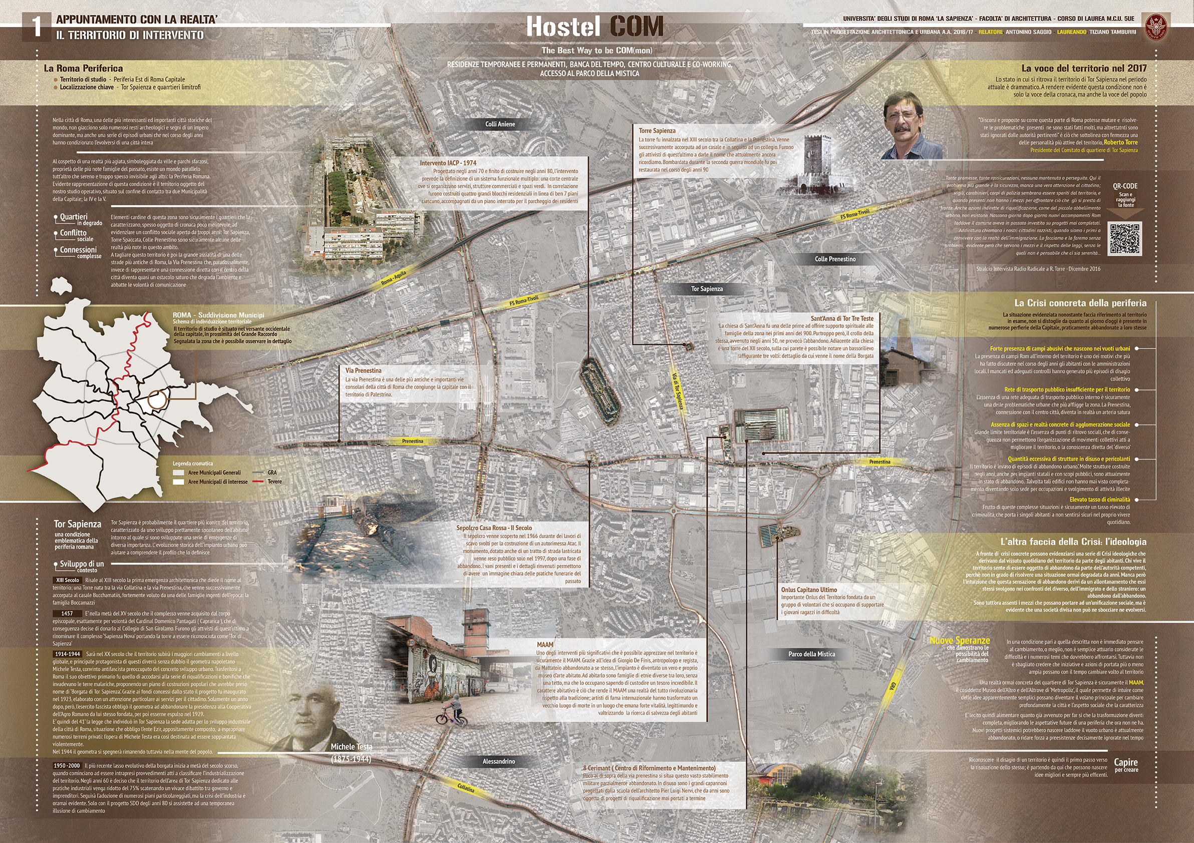 Hostel COM Residenze temporanee e permanenti, Banca del tempo, Centro culturale e Co-Working, Accesso al Parco della Mistica Tiziano Tamburri AA 16-17 Tesi Discussa il 25 gennaio 2018 Relatore Antonino Saggio