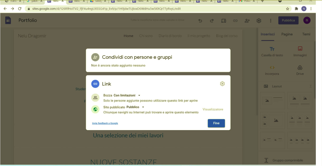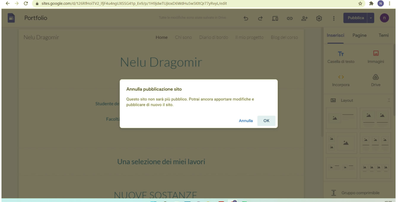 8. Cliccare su pubblica inpoche parole si tratta di rendere pbblico l'accesso al sito in maniera che non esistano vincoli-