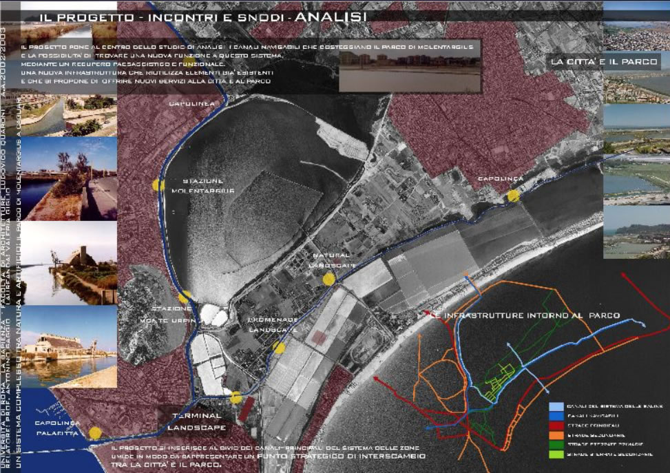 ANNA SANNA, RAMONA VITALE, VALERIA GIGLIO Advisor A. Saggio. Un sistema complesso tra natura e artificio: il parco di Molentargius a Cagliari. Il vento l'acqua e il territorio: un universo multisensoriale e multidirezionale per esplorare e interagire con il territorio. Univ. La Sapienza Roma 2001