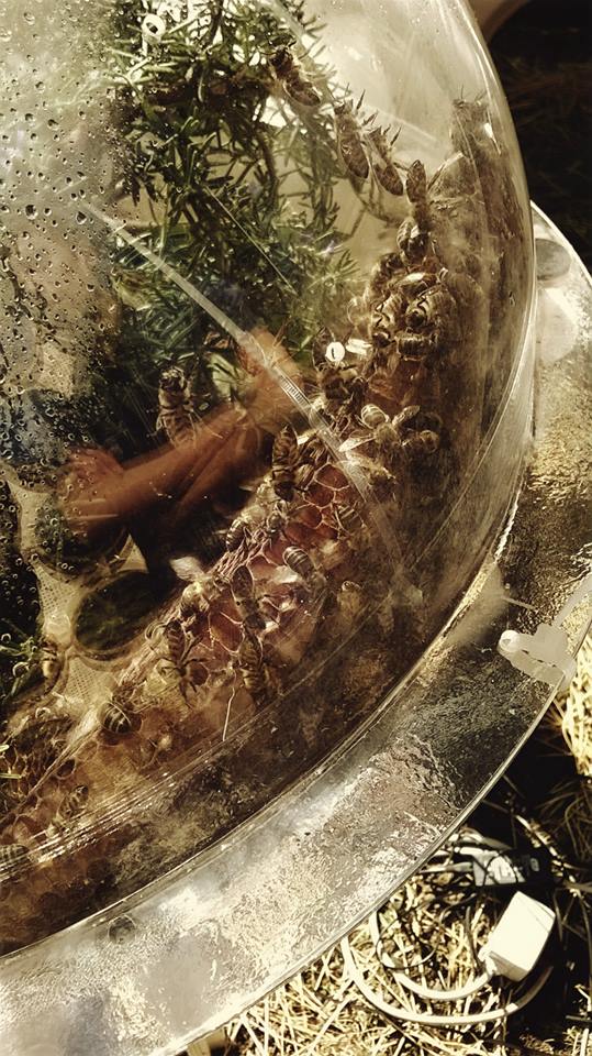 Vista ravvicinata di una sfera contenente una particolare specie di api. Foto: Sebastian Di Guard