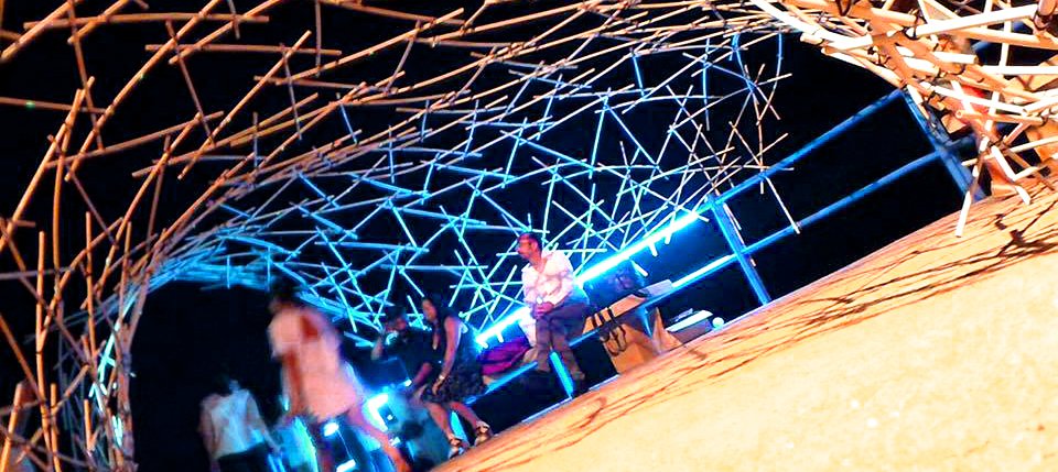 In questo modo si intesse una relazione tra la struttura nuova, quelle esistenti nell’ambiente e lo spazio che tutto avvolge come un fluido. Il suono è il grande rilevatore di questa relazione tra spazio strutture e ambiente. Naturalmente se l’insieme è messo nelle mani e nella voce di una artista come Valeria Cimò – musicista dialettale siciliana – tutto assume un senso. E le luci via MUSICAnella notte possono rivelare il suono, la partecipazione dei cittadini e Reciprocal diventare un segnale di una volontà comune verso principi di pulizia e decoro urbano e raccolta differenziata che a Gioiosa sono già in atto.