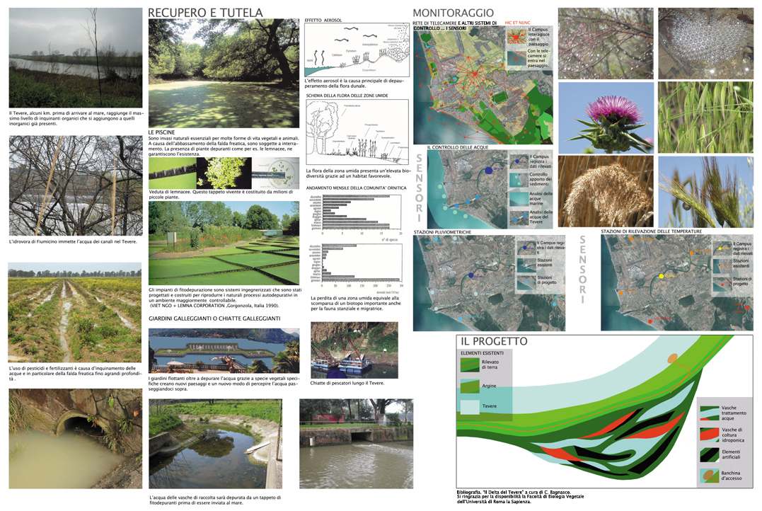 A cominciare da un'analisi a scala territoriale dell'ambiente del Delta, il progetto fornisce indicazioni per il ripristino, la tutela e il monitoraggio sia del sistema delle acque che della vegetazione. All'interno del Delta, nell'area della bonifica di Ostia Antica, affiora un Campus, un Castrum moderno, la cui funzione non è più quella di difesa delle antiche saline; bensì dell'ambiente.