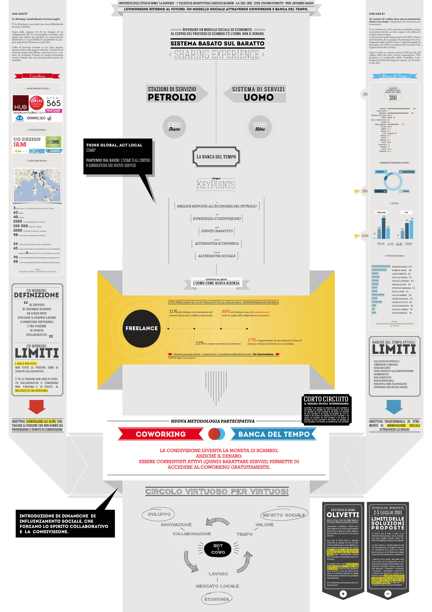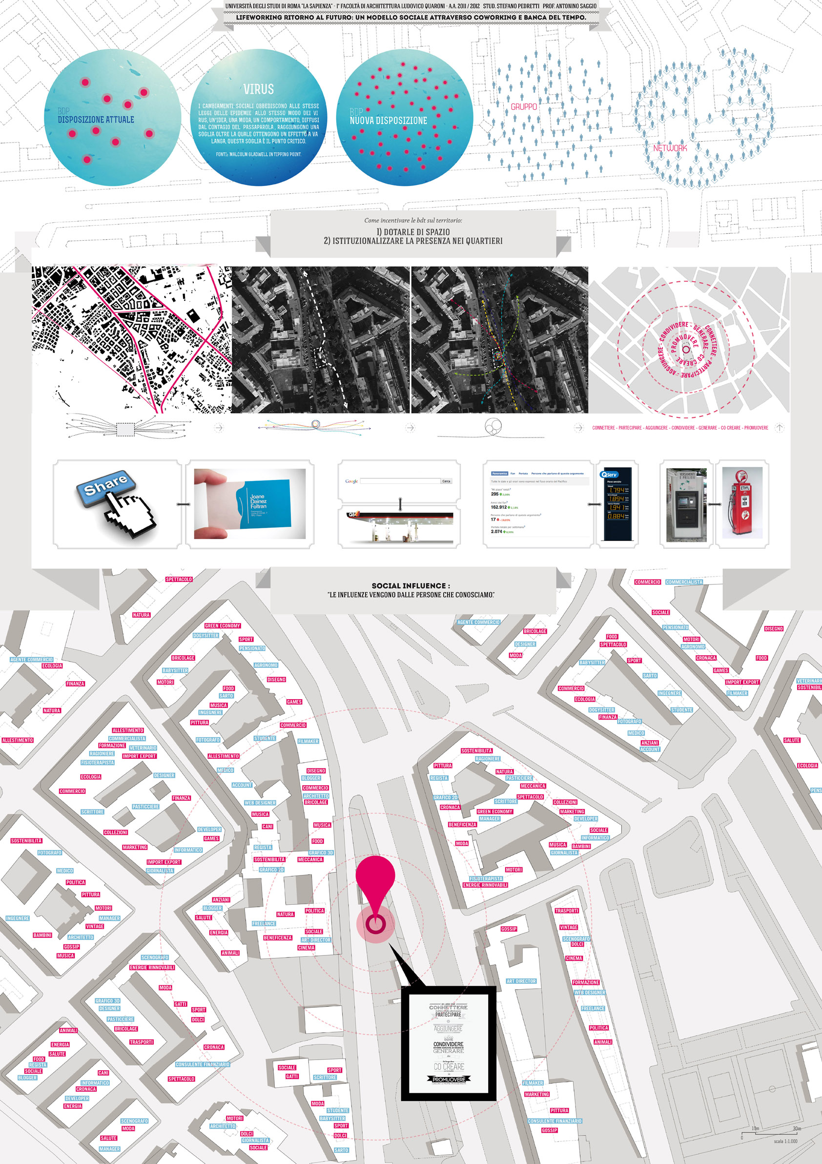 Questo lavoro si sviluppa come ricerca programma per lo sviluppo di una serie di innovative tipologie di edifici. Obiettivo del lavoro è strutturare, organizzare e comunicare una idea che potrebbe avere ricadute importanti nella città. Si tratta di dare un luogo fisico alle Banche del tempo - strutture che oggi sono ospitate in piccoli uffici municipali, ma che - basandosi su uno scambio paritario di prestazioni di lavoro tra i cittadini - potrebbero avere un impatto molto più grande nella vita di milioni di cittadini. Dare un luogo fisico alle Banche del tempo si collega all'idea, ricorrente nei lavori di Urban Voids, di operare nei vuoti abbandonanti della città esistente. In questo caso la caratteristica a rete della BdT rende particolarmente forte l'idea di insediare alcune BdT nelle aree dei benziani dismessi della città. Una seconda idea si collega a questa: quella di utilizzare parte degli spazi per il co-working, mettendo così insieme due funzioni innovative della città contemporanea. Il lavoro sulla tema della Banca del Tempo è iniziato nel cattedra nel quadro del progetto Urban Voids e li pubblicato v nel progetto a cura di C. Marconi v.. In questa Tesi di laurea in progettazione Archtitettonica Assisitita nell'ambito del progetto Tevere Cavo, di Stefano Pedretti la proposta assume un notevole livello di strutturazione e di comunicazione.