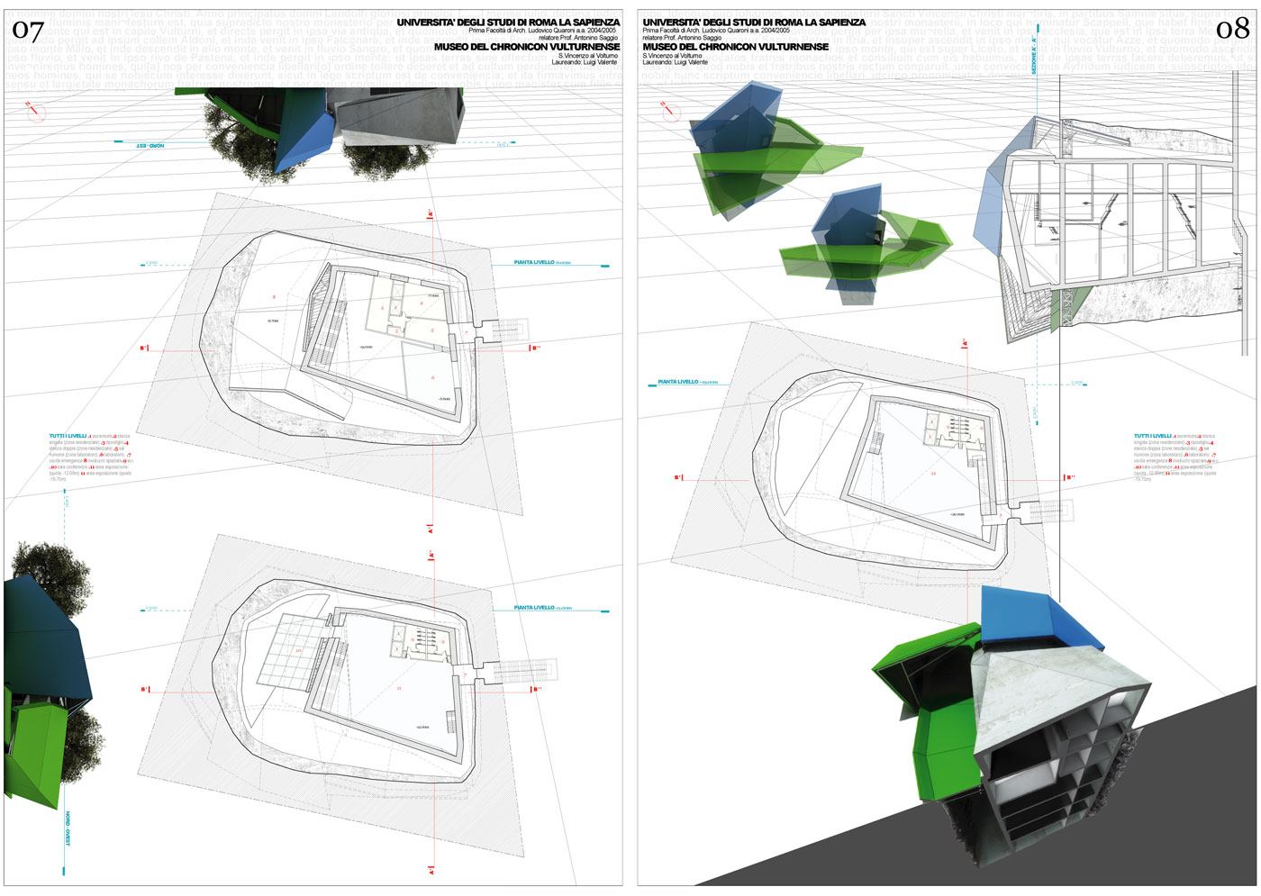 Il progetto per il Museo del Chronicon Vulturnense è un edificio che vuole catturare alcuni aspetti del manoscritto e renderli partecipi al visitatore attraverso le scelte architettoniche e di allestimento. Distribuito in sei livelli verticali, la caratteristica primaria dell'edificio è incassarsi nel terreno per più di 2/3 della sua sezione. Si tratta di una scelta che da una parte consente un minore impatto visivo nella valle del Volturno, dall'altra permette una narrazione autoreferenziale in cui il visitatore entra in un rapporto particolarmente vicino e intimo con il materiale esposto.