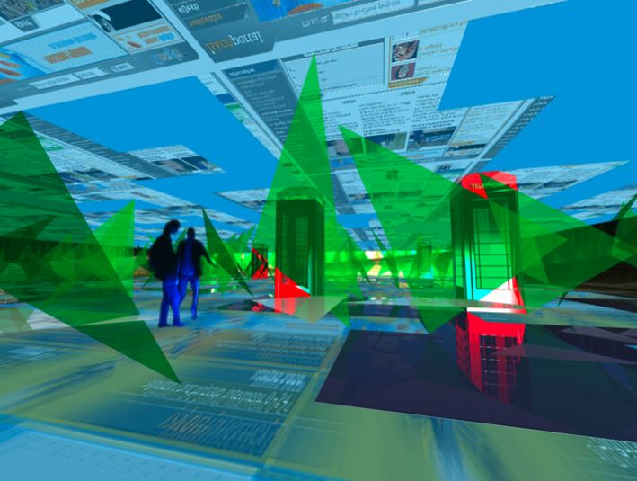 "Architecture is no longer simply the play of masses in light. It now embraces the play of digital information in space." Datasupermarket (infoscapes - mediascapes - e-scapes) is becoming electronic tent for modern nomads, hypertextual space surfers. In this nature for itself form is given by flow of instantaneous relations. Ever-changing constellations and configurations of desired data and media produce total digital experience. Hypermultimedia "building" offers information and knowledge through personalised ambience and "natural" environments. It is neither library (analogue), nor mediateque (analogue-digital), but datascapes (digital), highly personalised tactile-corporeal simulacrum, electronic environment where bits replace bricks, information replace mortar, interfaces replace walls... Consisted of ritual (physical anchors - phone boxes) and virtual (cyber matrix - transformational algorithms) part of the public/social event. Entering phone box one changes digital constellations and configurations around it by desiring media and data, creating environment "constructed" totally by information themselves updated in the real time. Datascapes conditioning mutations are morph jungle, liquid lounge, chill-out kaleidoscope, defragmentation oasis, reality-show para-site, blur mall, electronic shadow, pierced void...