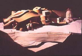 uno specchio d'acqua. Questi volumi fuoriescono da un meandrico drappeggio
