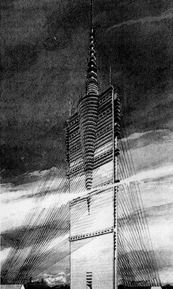 La torre è una grande trave a sbalzo sul potente ancoraggio al suolo e viene mantenuta in posizione tramite gli stralli - di nuovo ancorati al terreno - che rispondono alle fortissime sollecitazione laterali esercitate dal vento. Nasce cosi uno schema originale di grattacielo che deriva dalla paziente e accanita ricerca di un team multidisciplianre tra ipotesi statiche alternative che permettono di ipotizzare il raggiungimento di una altezza maggiore delle torri di questo tipo esistenti nel mondo.